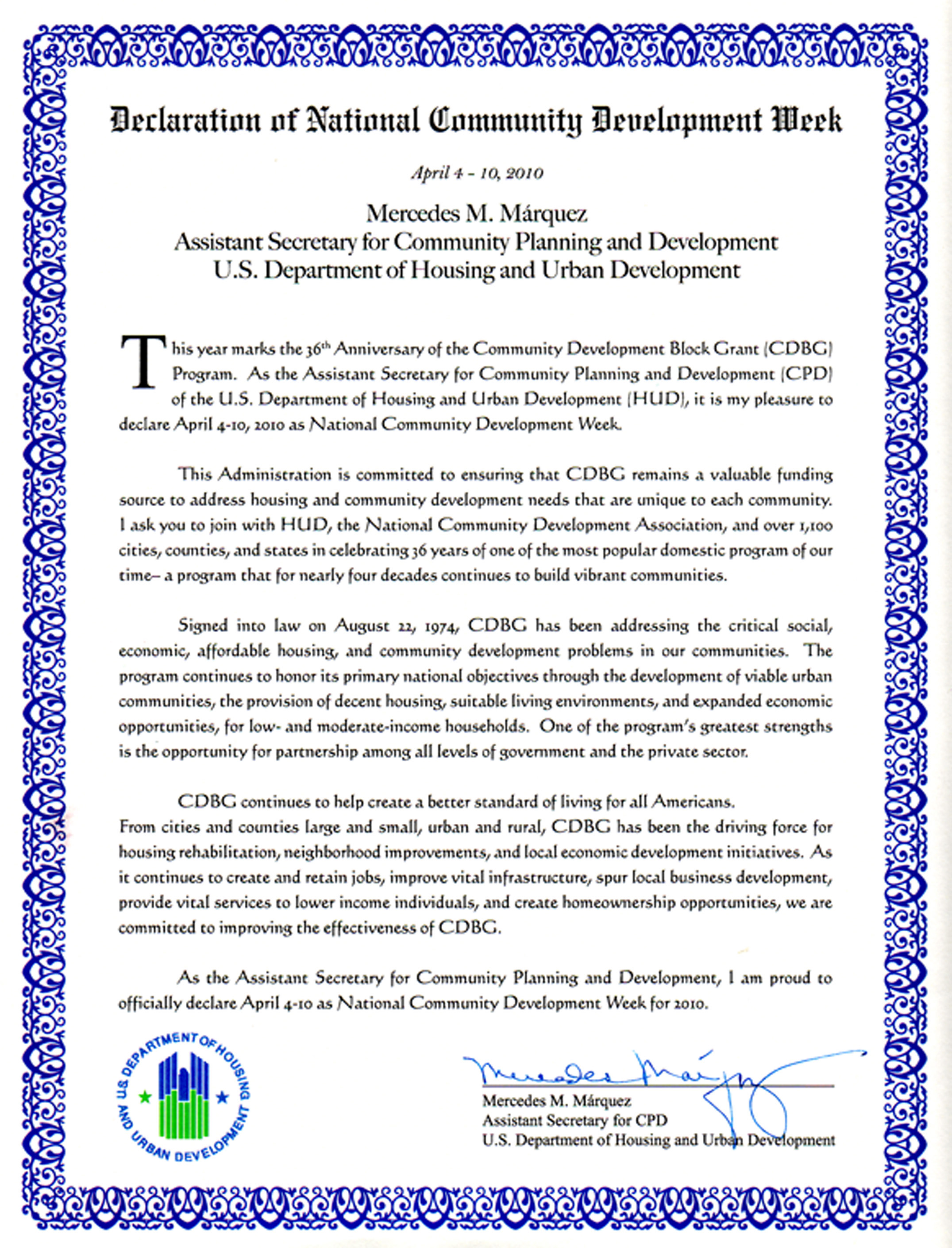 John A. Sasso Community Development Week Award Information